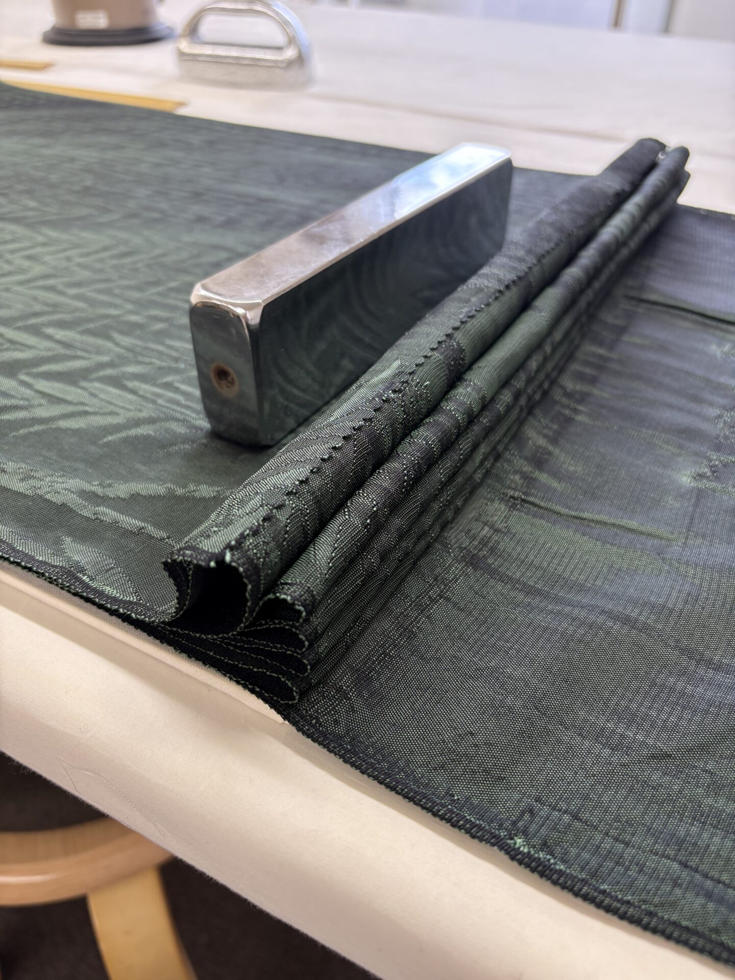 前回仕立てた着物衿の雨コートは繰越1寸8分と、とても大きな寸法にしましたが、着物衿コートの場合、繰越寸法は大きすぎない方が着姿が綺麗になると感じたため小さく変更しました。