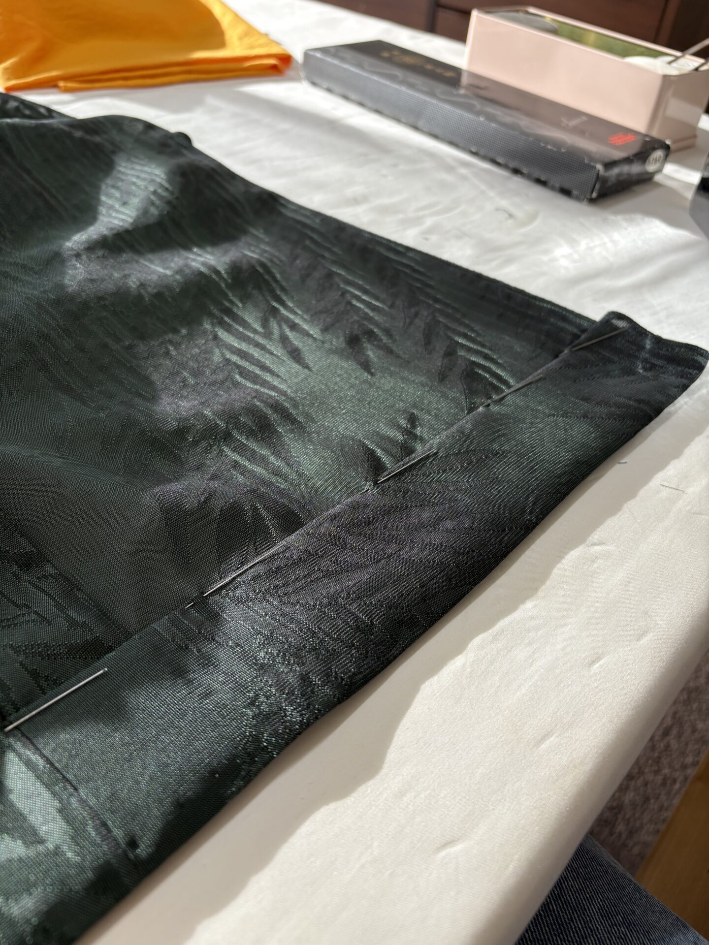 着物よりも小さな肩明きの寸法にしました。前回仕立てた着物衿の雨コートのとき、衿が肩から落ちる感覚があったため肩明きを小さくして変化を見ます。予想としては良い着心地になると思っています。