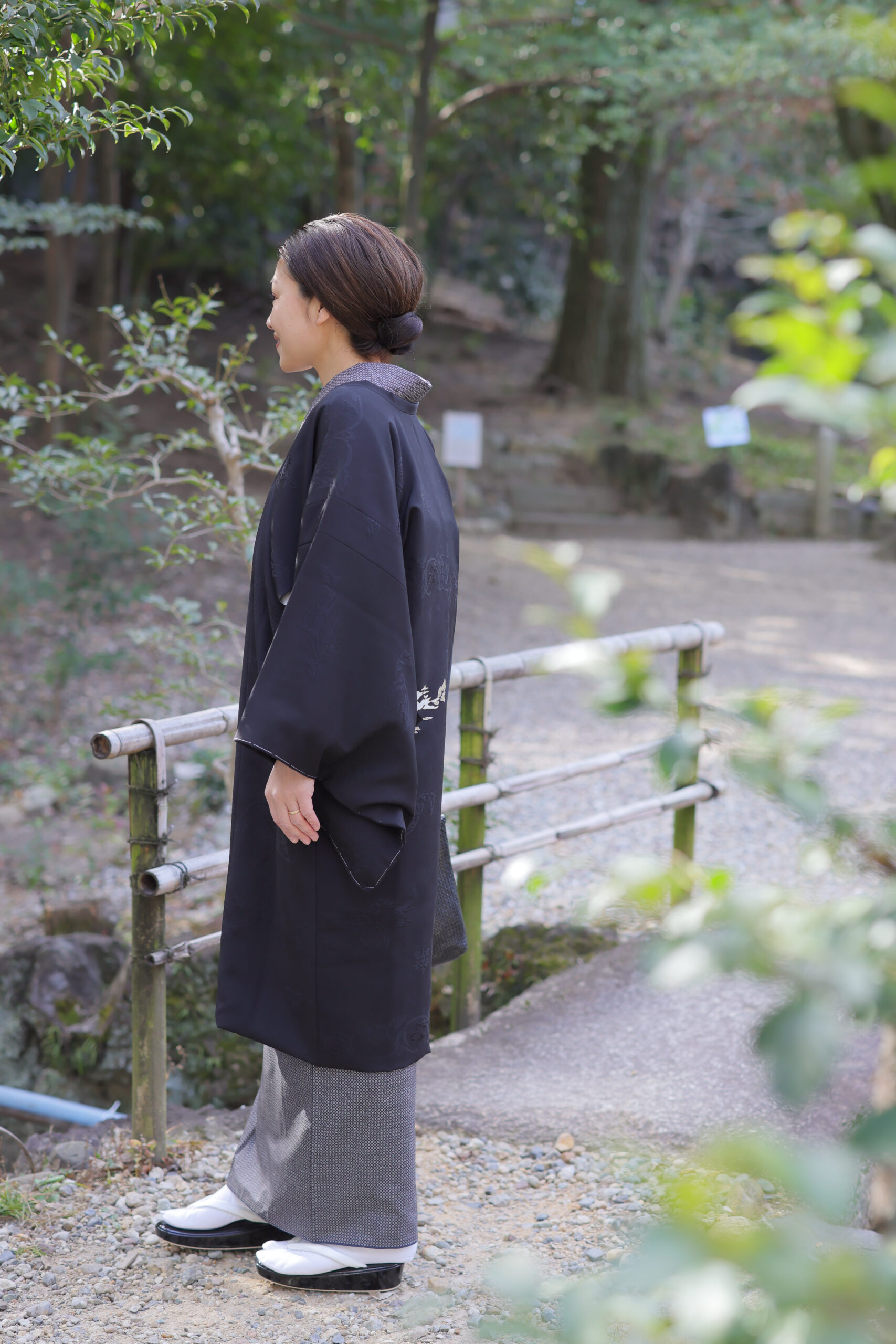 私の基本寸法「前巾5寸3分」に対して、前巾6寸にして仕立てました。前巾を広くしたことで裾まわりにゆとりが生まれ、前巾5寸3分」の時よりとても良くなりました。道行コートはタイトなシルエットを目指すよりも裾周りに少しゆとりがあるぐらいの方が心地良いと感じています。