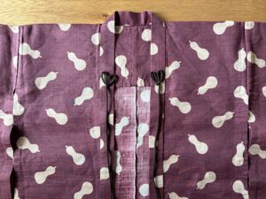 ここ数年、麻着物を浴衣として着用していましたが、浴衣らしい柄が恋しくなり新調しました。今回は、バチ衿はバチ衿ですが、衿巾をほんの少し広めで仕立ててみました。
